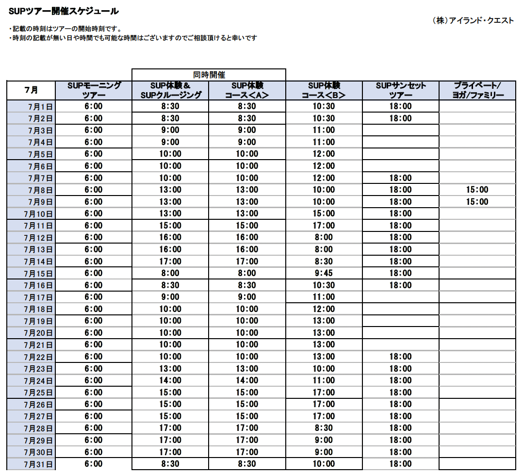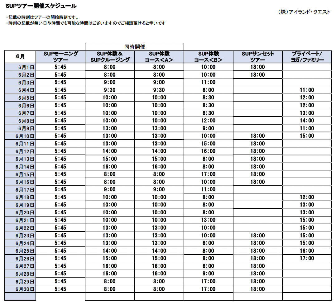 サップ&ヨガ スケジュール